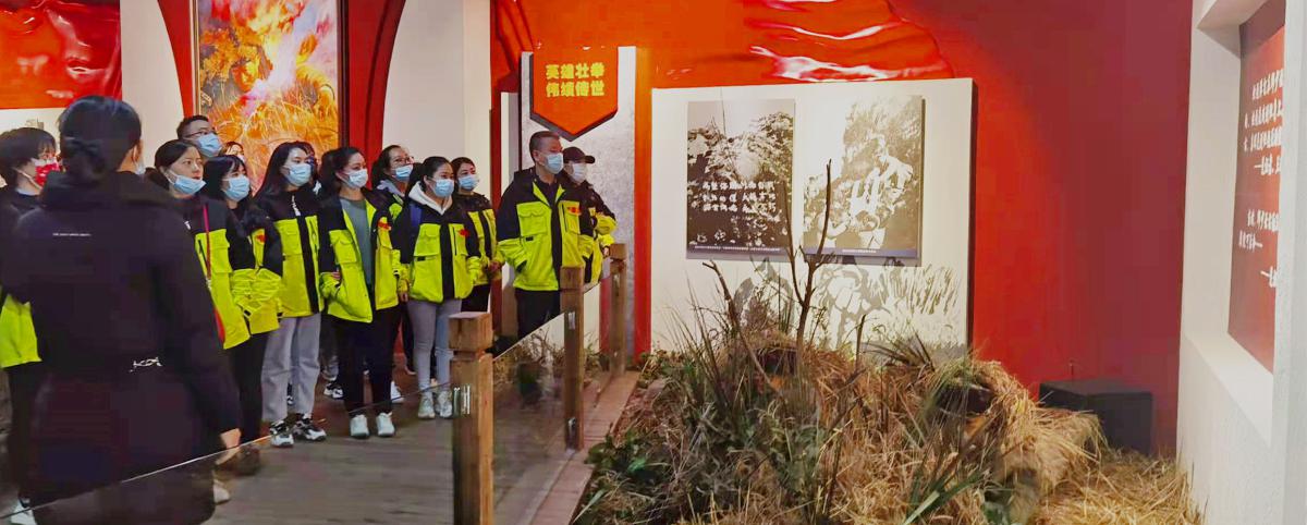 在解说员的引导下,支部党员和入党积极分子参观了邱少云烈士事迹陈列馆。宣传委员陈春姣领誓,大家面向党旗庄严列队,重温入党誓词;党员盛禾馨和入党积极分子李自强分享党史学习心得体会。